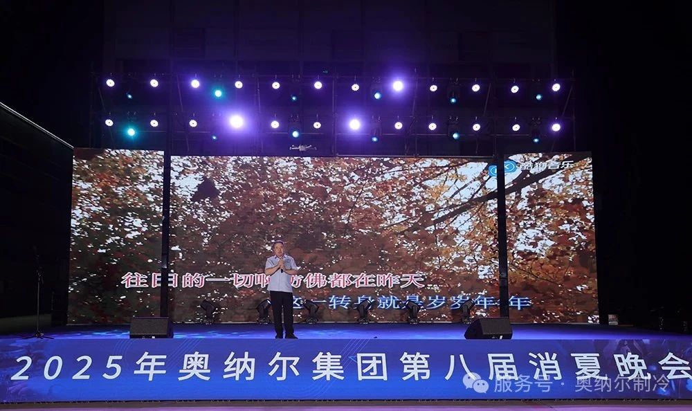 晚会在乐队热烈的开场演奏中迅速点燃现场气氛,激昂的旋律瞬间将观众带入欢乐氛围。随后,集团董事长登台致辞,深情回顾了过去一年的奋斗历程。他指出,山东奥纳尔制冷科技有限公司深耕冷链及食品企业制冷领域,始终秉持匠心精神,以创新驱动技术突破,持续巩固行业领先地位;山东华誉机械设备有限公司则实现重大跨越,成功迁入 4 万平方米标准化新厂房,为企业高质量发展注入强劲动能。董事长向每一位拼搏奋进的奥纳尔人致以诚挚感谢,高度赞扬团队在攻坚克难中展现出的责任担当。